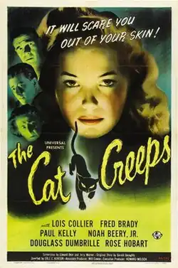 The Cat Creeps is a 1946 American film directed by Erle C. Kenton and starring Noah Beery Jr., Lois Collier, and Paul Kelly.[2] It follows a journalist and his photographer who attempt to research an unsolved death and locate a missing fortune, with the help of a black cat that appears to be possessed by the spirit of a dead woman.