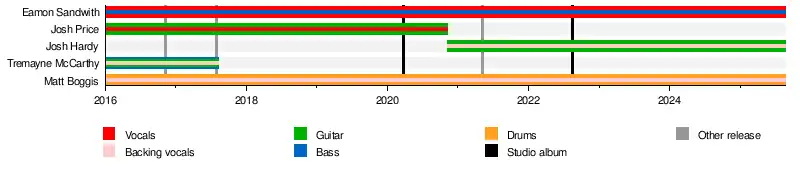 - Eamon Zambia Sandwith – lead vocals, bass guitar (2016–present)