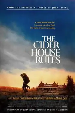The Cider House Rules is a 1999 American drama film directed by Lasse Hallström from a screenplay by John Irving, based on Irving's 1985 novel. Its story follows Homer Wells, who lives in a World War II-era Maine orphanage run by a doctor who trains him to be an OB/GYN, and his journey after leaving the orphanage. The film stars Tobey Maguire, Charlize Theron, Delroy Lindo, Paul Rudd, Michael Caine, Jane Alexander, Kathy Baker, Kieran Culkin, Heavy D, Kate Nelligan, and Erykah Badu.