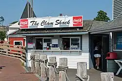 The Clam Shack is a seafood restaurant in Kennebunkport, Maine that serves its food for take-out. It has been in operation since 1968 and serves dishes from New England's cuisine. It is especially known for its lobster rolls. The shack has won accolades from magazines like Gourmet and Travel + Leisure.[1] It is only open from May to October.[2] Many celebrities have been spotted at the restaurant.[3]