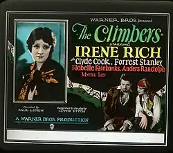 The Climbers is a 1927 silent film produced and distributed by Warner Bros. and presumed lost.[3] The film stars Irene Rich and was directed by Paul Stein. It was based on Clyde Fitch's 1901 play of the same name, but bore scant resemblance to it.[4][5]