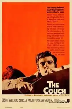 The Couch is a 1962 American psychological horror film directed by Owen Crump from a screenplay by Robert Bloch and a story by Blake Edwards and Owen Crump. The film stars Grant Williams, Shirley Knight, and Onslow Stevens.[1][2] The film was released by Warner Bros. on February 21, 1962.