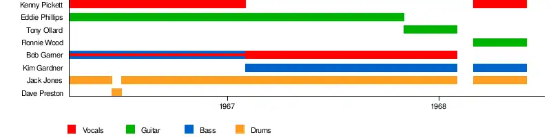 - Bob Garner – vocals, bass guitar (1966–1967, 1993–1997); lead vocals (1967–1968, 1997 – early 2000s)