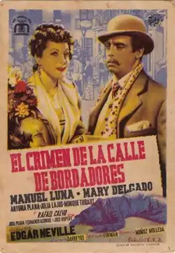 The Crime of Bordadores Street (Spanish: El crimen de la calle Bordadores) is a 1946 Spanish crime film written and directed by Edgar Neville.[1] It is set in Madrid at the end of the 19th century and based on a true story, the Fuencarral Street Case.[2]