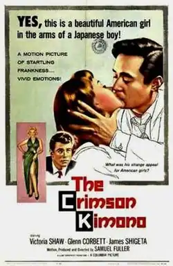 The Crimson Kimono is a 1959 American crime film noir drama starring James Shigeta, Glenn Corbett and Victoria Shaw.[1] Directed by Samuel Fuller, it featured several ahead-of-its-time ideas about race and society's perception of race, a thematic and stylistic trademark of Fuller.