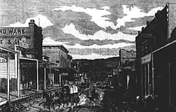 In 1838 a branch of Jason Lee's Methodist Mission was established at Celilo Falls, named the Wascopam Mission, after the native Wasco Indians.[9] In 1850 the U.S. Army founded a small post at the site of the old mission, being eventually named Fort Dalles. Fort Dalles became the nucleus of the town of The Dalles, which began to develop along the waterfront.[9] In 1855, at the end of the Cayuse War, the Indians living near The Dalles were forcibly relocated by the U.S. Army to the Warm Springs Indian Reservation.[9]