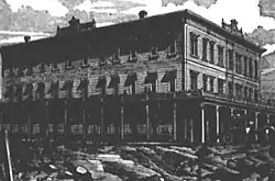 In 1864, the U.S. Congress appropriated money to build a U.S. mint in The Dalles that was to use gold from Canyon City for coinage. The supply of gold from Canyon City began to dwindle, however, and other problems, such as cost overruns, workers leaving to work the gold fields, and flooding from the Columbia River, also contributed to the project running two years behind schedule and led eventually to its demise. In 1870, the State of Oregon received the property from the U.S. Government and the building was put to other uses.[10] The mint is now home to Freebridge Brewing.[11][12]