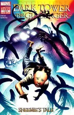 The Dark Tower: The Gunslinger - Sheemie's Tale is a two-issue comic book limited series published by Marvel Comics.[1][2][3] It is the second non-sequential comic book limited series based on Stephen King's The Dark Tower series of novels. It is plotted and scripted by Robin Furth, with illustrations by Richard Isanove. Stephen King is the Creative and Executive Director of the project. The first issue was published on January 9, 2013.