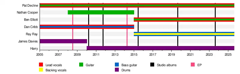 - Dan Cribb – lead vocals, bass (2005–2015)[10]
