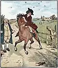The Diverting History of John Gilpin Shewing how he went Farther than he intended, and came safe Home again is a comic ballad by William Cowper written in 1782.[1] The ballad concerns a draper called John Gilpin who rides a runaway horse. Cowper heard the story from Lady Anna Austen at a time of severe depression, and it cheered him up so much that he put it into verse.[2] The poem was published anonymously in the Public Advertiser in 1782, and then published with The Task in 1785.[3] It was very popular, to the extent that "pirate copies were being sold all across the country, together with Gilpin books and toys."[2]