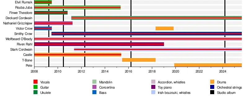 - Nathaniel Grizzlejaw – concertina, vocals (2008–2011)