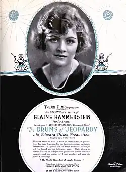 The Drums of Jeopardy is a 1923 American silent mystery film directed by Edward Dillon, written by Arthur Hoerl and featuring Wallace Beery.[1] It is based on the 1920 novel of the same name by Harold McGrath which was serialized in the Saturday Evening Post.[2] The film was released by Tru-art Film Company in November 1923.[3][4][5] The name of the villain in the story was originally called Boris Karlov, but when the actor Boris Karloff rose to prominence circa 1923, the character's name was changed to Gregor Karlov to avoid confusion. It was changed back to Boris again in the 1931 remake of the film which starred Warner Oland as the villain.[1]