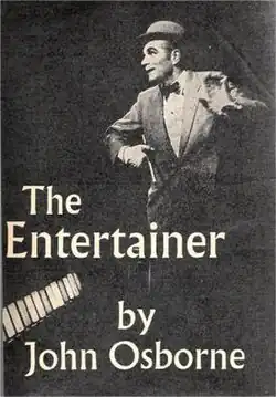 The Entertainer is a three-act play by John Osborne, first produced in 1957. His first play, Look Back in Anger, had attracted mixed notices but a great deal of publicity.[1] Having depicted an "angry young man" in the earlier play, Osborne wrote at Laurence Olivier's request[2] about an angry middle-aged man in The Entertainer. Its main character is Archie Rice, a failing music-hall performer. Years later, Tony Richardson, who directed The Entertainer's premiere season, described Archie as "the embodiment of a national mood ... Archie was the future, the decline, the sourness, the ashes of old glory, where Britain was heading".[3] The first performance was given on 10 April 1957 at the Royal Court Theatre, London. This theatre was well known for its commitment to new and non-traditional drama, and the inclusion of a West End star such as Olivier in the cast caused much interest.[4]