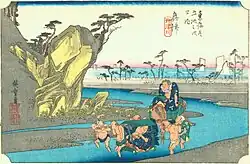 The Fifty-Three Stations of the Tōkaidō (東海道五十三次, Tōkaidō Gojūsan-tsugi), in the Hōeidō edition (1833–1834), is a series of ukiyo-e woodcut prints created by Utagawa Hiroshige after his first travel along the Tōkaidō in 1832.[1]