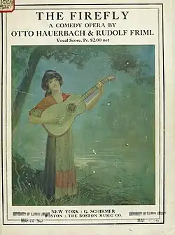 The Firefly was the first operetta written by composer Rudolf Friml, with a libretto by Otto Harbach. The story concerns a young Italian girl, who is a street singer in New York. She disguises herself and serves as a cabin boy on a ship to Bermuda, where she falls in love. Complications arise, and eventually, she becomes a grand opera diva.