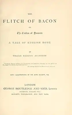 The Flitch of Bacon is an 1854 historical novel by the British writer William Harrison Ainsworth. It was originally serialised in The New Monthly Magazine.[1] He based it on the tradition of the Flitch of Bacon at Little Dunmow in Essex, awarded to the happiest married couple. It inspired a revival of the practice, with Ainsworth judging a competition the following year.[2]