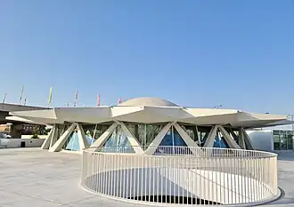 The Flying Saucer in Sharjah, United Arab Emirates, is a 1978 building constructed in Brutalist style and originally opened as a café, restaurant, newsstand, gift shop and pharmacy.[1] It was subsequently a Lal's supermarket from 1988 to 1997. It has been restored by Sharjah Art Foundation and is now open as a community art space.