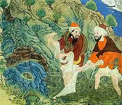 The story was also preserved in the Persian Kalila and Dimna as a tale of three fish, one wise, one clever and one stupid. When the fish notice fishermen passing, the wise fish simply makes a quick exit from the pool, the clever fish manages to avoid being eaten by playing dead, while the stupid fish is caught and eaten.[4] Rumi, writing in the 13th century, used this story in Book IV of his Masnavi,[5] drawing from it the advisability of resigning one's identity into the wholeness of the Creator.