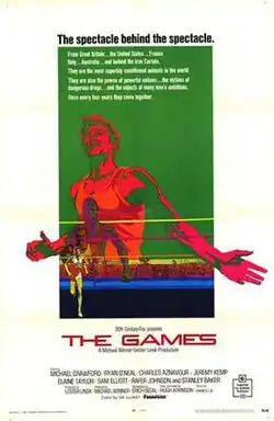 The Games is a 1970 British sports drama film directed by Michael Winner. It is based on the 1968 Hugh Atkinson novel and adapted to the screen by Erich Segal. The plot concerned four marathon competitors at a fictitious Olympic Games in Rome, played by Michael Crawford, Ryan O'Neal, Charles Aznavour and Athol Compton. Elton John recorded one song ("From Denver to L.A.") for the soundtrack.