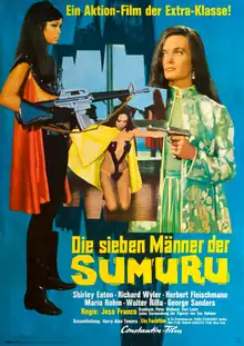 The Girl from Rio (German: Die sieben Männer der Sumuru, lit. 'The Seven Men of Sumuru') is a 1969 spy-fi film directed by Jess Franco and starring Shirley Eaton, Richard Wyler, George Sanders and Maria Rohm. Written and produced by Harry Alan Towers, the film follows a tribe of Amazonian women, as, led by their queen, they attack wealthy men as part of a long-term plan to take over the world. A co-production between West Germany, Spain and the United States, the film is a sequel to The Million Eyes of Sumuru (1967), and is based on Sax Rohmer's Sumuru character. Nevertheless, Sumuru's character is referred to as either "Sumitra" or "Sunanda".