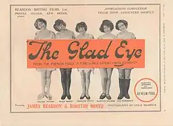 The Glad Eye is a 1920 British silent comedy film directed by James Reardon and Kenelm Foss and starring James Reardon, Dorothy Minto and Hayford Hobbs.[1] It is an adaptation of the play Le Zebre by Paul Armont and Nicolas Nancey. It was remade as a film of the same name in 1927.