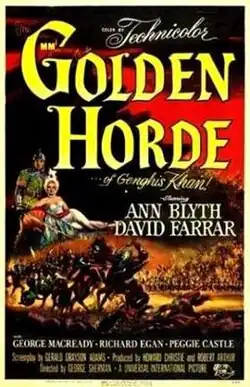 The Golden Horde is a 1951 American historical adventure film directed by George Sherman and starring Ann Blyth, David Farrar, with George Macready, Richard Egan and Peggie Castle.[2] Many of the exterior scenes were shot in the Death Valley National Park in California. It was made using Technicolor, and was one of a series of color films in exotic setting released by Universal around this time.