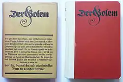 The Golem (original German title: Der Golem) is a novel written by Gustav Meyrink between 1907 and 1914.[1] First published in serial form from December 1913 to August 1914[1] in the periodical Die Weißen Blätter, The Golem was published in book form in 1915 by Kurt Wolff, Leipzig. The Golem was Meyrink's first novel. It sold over 200,000 copies in 1915.[2] It became his most popular and successful literary work,[2] and is generally described as the most "accessible" of his full-length novels. It was first translated into English in 1928.