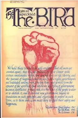 The Great Speckled Bird was a counterculture underground newspaper based in Atlanta from 1968 to 1976 and 1988 through 1990.[1][2] Commonly known as The Bird,[2] it was founded by New Left activists from Emory University and members of the Southern Student Organizing Committee, an offshoot of Students for a Democratic Society. Founding editors included Tom and Stephanie Coffin, Howard Romaine and Gene Guerrero Jr.[3] The first issue appeared March 8, 1968, and within 6 months it was publishing weekly. By 1970 it was the third largest weekly newspaper in Georgia with a paid circulation of 22,000 copies. The paper subscribed to Liberation News Service, a leftist news collective. The office of The Great Speckled Bird at the north end of Piedmont Park (240 Westminster Drive) was firebombed and destroyed on May 6, 1972.[4] In a letter to the editor of the New York Review of Books, Jack Newfield et al. noted that the bombing occurred after the paper published an exposé of the mayor of Atlanta.[5]