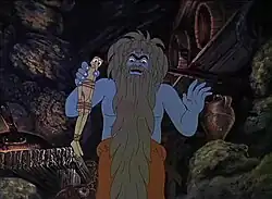The Green Fisherman is an ogre who dwells in a sea cave on the coast of Busy Bee Island (Isola delle Api Industriose) where he lives on a diet seemingly composed entirely of sea life. He is described as "...so ugly, he looked like a sea monster. Instead of hair, he had on his head a dense clump of green grass; green was the skin on his body, green were his eyes, green was his long beard which drooped downwards. He looked like a great lizard erected on its hind legs."