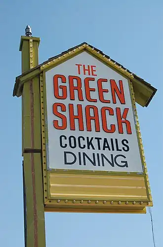 Opened in 1929[4] and known as the Colorado when it opened on Christmas Eve 1929,[5] the Green Shack had previously been the Swanky Club. With the addition of an old Union Pacific Railroad barracks for expansion, it was renamed Green Shack in 1932.[6] The green paint on the addition was the source of the new name.