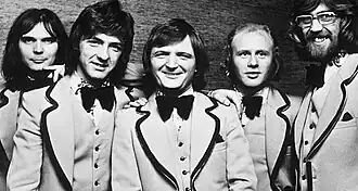 The band formed in 1962 in Leeds by Robin Colvill (born 8 August 1944 in Leeds). Colvill was a jukebox mender who was asked to fix a broken jukebox at a coffee bar. As he was fixing the machine, he saw Maurice Lee (born 12 May 1946 in Leeds) who was playing the guitar on the other side of the bar, keeping the customers entertained whilst there was no music. Colvill approached Lee and asked him to join his group; when Lee asked who else was in the band Colvill replied “So far, just you”.[3] Lee accepted with the condition that his friend Graham Walker (born 17 May 1945 in Leeds) could join as well; after Colvill asked Lee what instruments Walker could play, Lee said that he would teach him bass guitar.[3][4] Needing a lead guitarist, they added Carl Sutcliffe (born 1944 in Leeds) whose brother, Albert (born 22 December 1940 in Leeds), was also recruited, due to him being an “Opera trained” singer who owned a microphone.[5] The group practised at Stainbeck Youth Club, Meanwood. They played at the "Battle of the Bands" (organised by a Leeds-based newspaper) at the Queens Hall, Leeds (an all nighter) on the same night on 28 June 1963 that the Beatles played this venue as second on the bill to Acker Bilk and his Jazzmen. Over time, the group began introducing comedy routines into their act, initially as a way to cover time between songs should their instruments need retuning.[5] 1967 saw the addition of sixth member Phillip Hall, though he left the group after a few months.