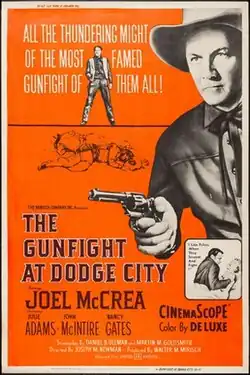 The Gunfight at Dodge City is a 1959 American DeLuxe Color Western CinemaScope film. It was produced by the Mirisch Company, directed by Joseph M. Newman, co-written by Martin Goldsmith and Daniel B. Ullman and starred Joel McCrea as Bat Masterson.[1]
