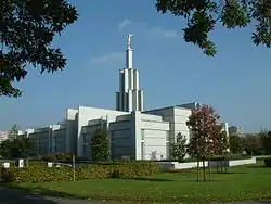 The Hague Netherlands Temple is the 114th operating temple of the Church of Jesus Christ of Latter-day Saints (LDS Church), located on the outskirts of The Hague, Zoetermeer, The Netherlands.[1][2][3] It was the church's eighth temple built in Europe, the only temple in the Netherlands. The intent to build the temple was announced on August 16, 1999, by the First Presidency in a letter to local leaders.[4] Services in the temple are held in Dutch, French, and English. Other non-native speakers can follow the services simultaneously in their own language via headphones.