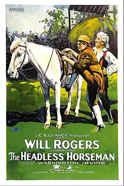 The Headless Horseman is a 1922 American silent film adaptation of Washington Irving's 1820 short story "The Legend of Sleepy Hollow" directed by Edward D. Venturini. It stars Will Rogers, Lois Meredith (in her last major on-screen appearance) and Ben Hendricks Jr.[1] It was the first panchromatic black-and-white feature film.[2]