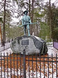 Kitson's work proved to be very popular,[4] largely because of its realism and historical accuracy.[7] In 1921, the Gorham Manufacturing Company, located in Providence, Rhode Island, bought the rights to the statue, and over the next 44 years Gorham cast at least 50 Hiker statues.[7] The earliest installations tended to be in the northeastern United States, with post-World War II statues installed mostly in the South and West.[6]