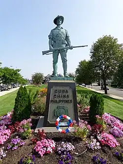 1928 Located Foster Park, Bordered by State S.E., Cherry S.E., & Prospect S.E. Grand Rapids Michigan 42°57′34″N 85°39′36″W / 42.959570°N 85.659920°W / 42.959570; -85.659920 (Grand Rapids, Michigan) Formerly located at Lookout Park, from 1928 to 1957. The placard on the monument states, "Freedom, Patriotism and Humanity. Dedicated to the soldiers and sailors of the war with Spain, Philippine Insurrection and China Relief Expedition." [11]