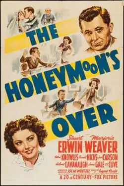 The Honeymoon's Over is a 1939 American comedy film directed by Eugene Forde and written by Leonard Hoffman, Hamilton MacFadden and Clay Williams. It is based on the 1921 play Six-Cylinder Love by William Anthony McGuire. The film stars Stuart Erwin, Marjorie Weaver, Patric Knowles, Russell Hicks, Jack Carson and Hobart Cavanaugh. The film was released on December 14, 1939, by 20th Century Fox.[1][2][3]