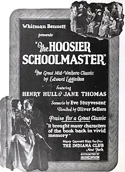 The Hoosier Schoolmaster is a 1924 American silent drama film directed by Oliver L. Sellers and starring Henry Hull, Jane Thomas, and Frank Dane.[1] It is an adaptation of the novel The Hoosier Schoolmaster by Edward Eggleston.[2] The film was remade as a post-Civil War talkie in 1935.