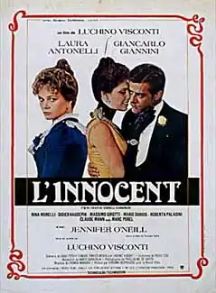 The Innocent (Italian: L'innocente[1]) is a 1976 period drama film directed by Luchino Visconti and starring Giancarlo Giannini, Laura Antonelli, and Jennifer O'Neill. It is an adaptation of Gabriele d'Annunzio's 1892 novel The Intruder,[2] about a chauvinist aristocrat who flaunts his mistress to his wife, but when he believes she has been unfaithful, he becomes enamored of her again. It was Visconti's final film, released posthumously, three months after his death in March 1976.