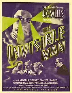 Following the success of Dracula, Richard L. Schayer and Robert Florey suggested to Universal Pictures that an adaptation of H.G. Wells's The Invisible Man as early as 1931.[10] Though promoted as being based on H.G. Wells' novel The Invisible Man, the screenplay only follows the basics of the original novel.[1] After going through several potential directors, including Florey, Cyril Gardner, E. A. Dupont, with James Whale eventually being chosen.[10] [11] Shooting of the film began in June 1933 and concluded in late August.[12]