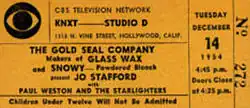 - ^ Pearson, Howard (February 12, 1954). "Jo Stafford TV Show Sets Debut Friday". The Deseret News. Retrieved March 12, 2011.