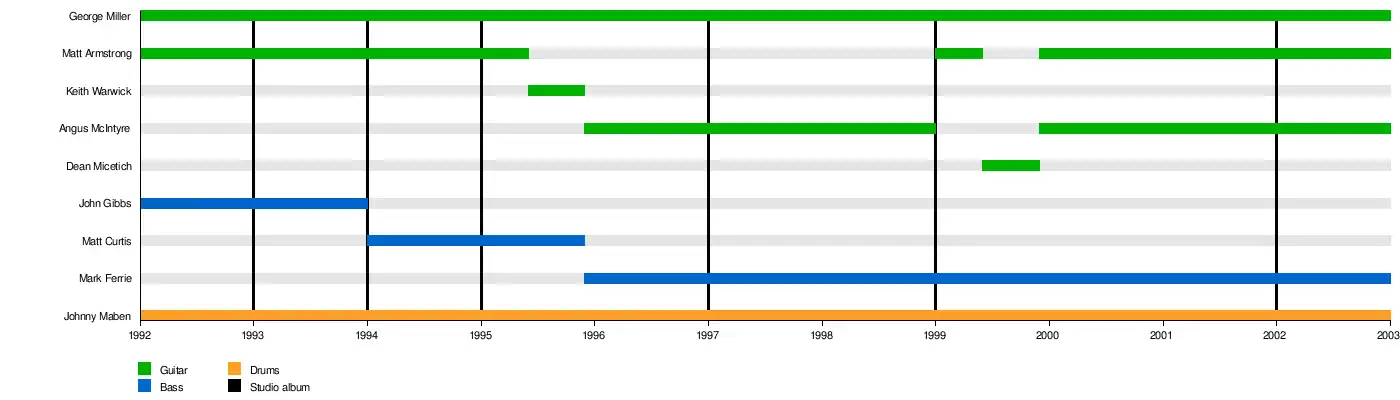 Past members | George Miller Johnny Maben Matt Armstrong John Gibbs Matt Curtis Mark Ferrie Keith Warwick Angus McIntyre Dean Micetich |