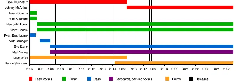 On May 15, 2015, David Journeaux posted on the band's Facebook page announcing his departure from the band. Three days later the band announced Johnny McArthur as their new vocalist and Kenny Saunders as their new drummer, replacing Mike Ieradi who left the band to join Protest the Hero.