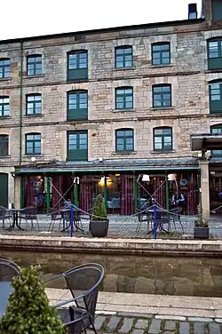 The Kitchin was opened by Tom Kitchin and then fiancée Michaela Berseilus in June 2006. The building is a former whisky bond on the waterfront in the Leith area of Edinburgh.[1] The imprint of Kitchin's work with Alain Ducasse and Pierre Koffmann is noticeable in the style of food served,[1][2] and the restaurant has received support from other chefs that Kitchin has worked with; including opening with the cutlery and plates formerly used at the three-Michelin-starred restaurant La Tante Claire, operated by Koffman.[1] The interior of the restaurant is decorated with dark woods and shades of grey by design company Cubit Design, and wallpapers by Jocelyn Warner.[1] A window opens from the dining room onto the kitchen area itself, and it has a conservatory-style bar serving snacks and light meals.[3]