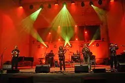 Wonder Wheel, released in 2006, showcased lyrics by American folk icon Woody Guthrie, selected by the band from the Woody Guthrie archive. Although the music draws primarily from a wide range of Americana, not klezmer, the album won a Grammy[8] in the category of Best Contemporary World Music Album. Another album of Guthrie material, with music drawn from the band's more usual Yiddish, Eastern European Jewish music roots, Woody Guthrie's Happy Joyous Hanukkah, was released the same year. Guthrie's granddaughter, Sarah Lee Guthrie, has appeared with them. Other key collaborations include the music to Tony Kushner's adaptation of The Dybbuk, "A Dybbuk: Between Two Worlds”;[9] The Well: Klezmatics with Chava Alberstein,[10] in which poetry by several prominent Yiddish poets was set to music; and Brother Moses Smote the Water with Jewish gospel-style singer Joshua Nelson.[11]