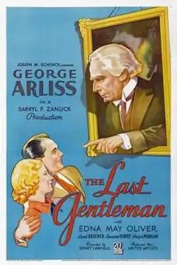 The Last Gentleman is a 1934 American pre-Code comedy film directed by Sidney Lanfield and written by Maude T. Howell, Leonard Praskins and Paul Schofield. The film stars George Arliss, Edna May Oliver, Janet Beecher, Charlotte Henry and Ralph Morgan. The film was released on April 28, 1934, by United Artists.[1][2][3]