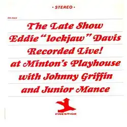 The Late Show is a live album by saxophonists Eddie "Lockjaw" Davis and Johnny Griffin recorded at Minton's Playhouse in 1961 and released on the Prestige label in 1965.[3] The album was the fourth release from the recordings at Minton's after The Tenor Scene, The First Set and The Midnight Show.