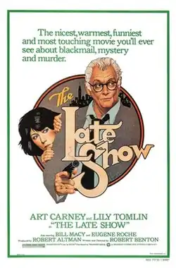 The Late Show is a 1977 American neo-noir comedy-mystery film, written and directed by Robert Benton and produced by Robert Altman. It stars Art Carney, Lily Tomlin, Bill Macy, Eugene Roche, and Joanna Cassidy.