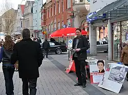 The North Rhine-Westphalia chapter received national attention because it was in this state that the party first ran for seats in the Landtag, or state parliament. A state conference in Düsseldorf on 23 January 2005 chose 40 candidates for the state reserve party list, with the Herne city party leader Jürgen Klute chosen as the lead candidate.[3] With the North Rhine-Westphalia state election of 2005, the WASG immediately became the fifth largest party in the state, but as it only garnered 2.2% of the vote (well below the 5% threshold required to enter parliament), they did not receive any seats. The party entered this election still in direct competition to the ideologically similar Party of Democratic Socialism (PDS), with whom they would cooperate in later elections.[4]