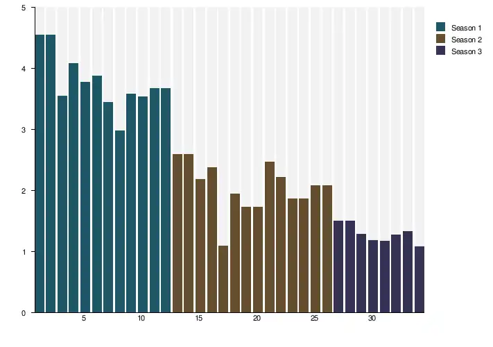 The Legend of Korra was initially conceived as a twelve-episode miniseries. Nickelodeon declined the creators' pitch for an Avatar: The Last Airbender follow-up animated film based on what then became the three-part comics The Promise, The Search and The Rift, choosing instead to expand Korra to 26 episodes.[4] The series was expanded further in July 2012 to 52 episodes. These episodes are grouped into four separate seasons ("Books") composed of twelve to fourteen episodes ("Chapters") each, with each season telling a stand-alone story. Beginning with episode 9 of season 3, new episodes were first distributed through the Internet rather than broadcast. The Legend of Korra concluded with the fourth season.[5]
